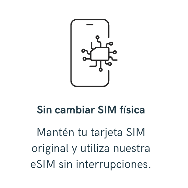 La eSIM (Embedded SIM) te permite instalar una línea adicional en tu teléfono sin perder tu línea original y sin la necesidad de insertar una SIM física adicional.
